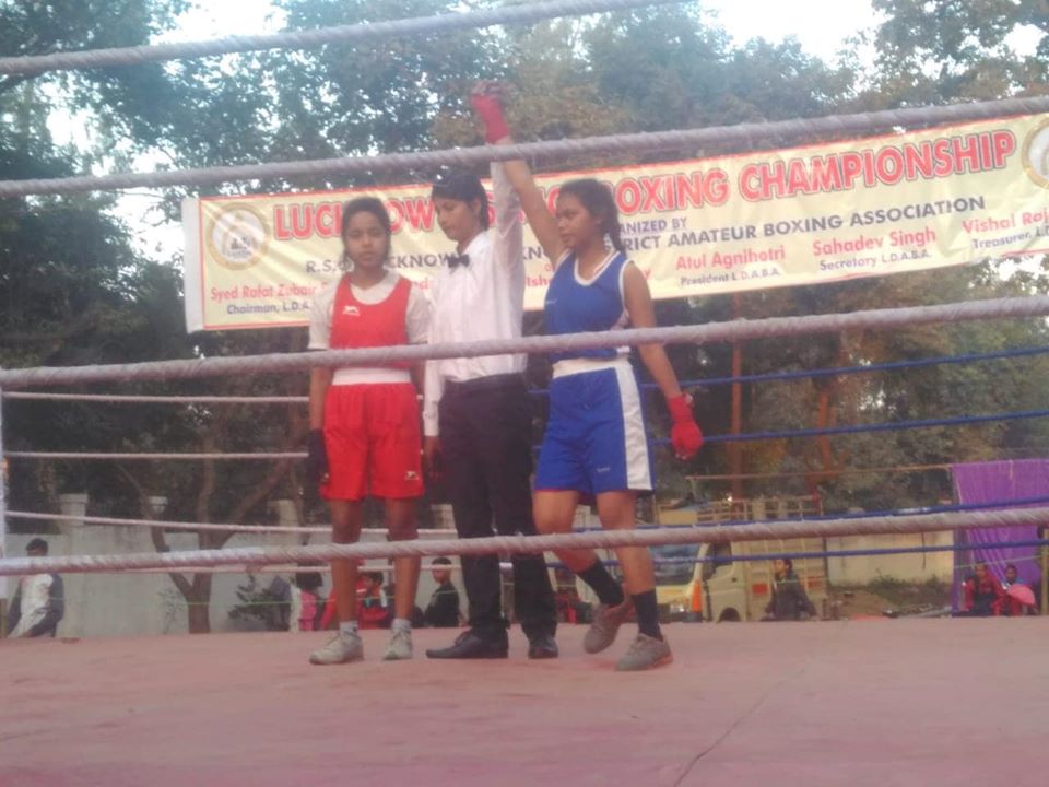 Pooja Singh of Class XI won silver medal in Lucknow District Boxing Championship held at K.D Singh Babu Stadium, Lucknow.