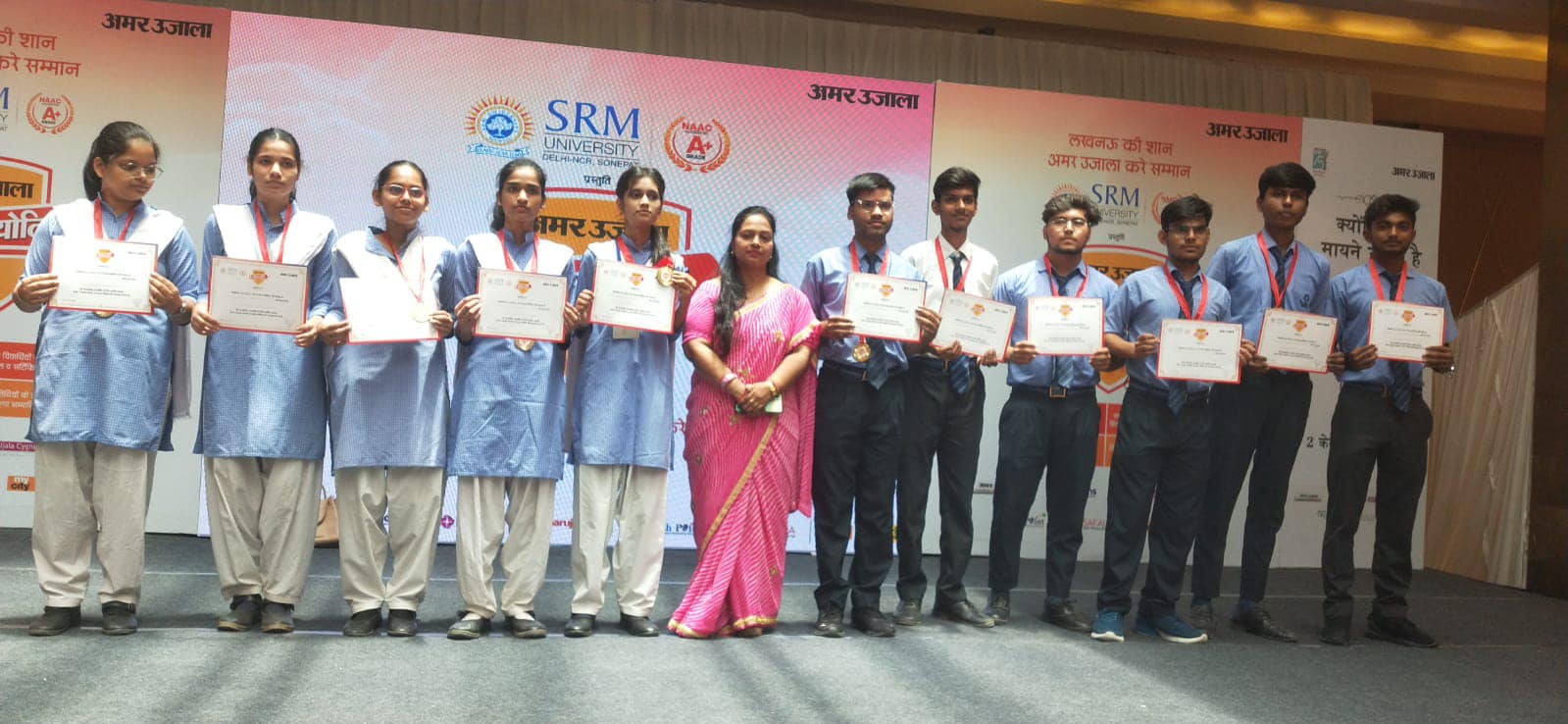 MERITORIOUS STUDENTS OF CLASSES 10 AND 12 OF VARDAAN INTERNATIONAL ACADEMY WERE AWARDED AT THE VIDYARTHI SAMMAN SAMAROH BY AMAR UJALA