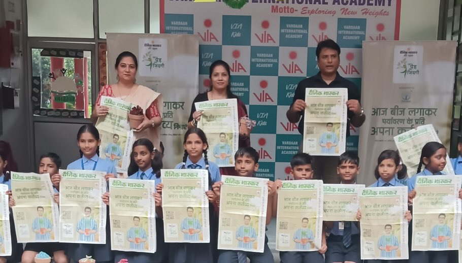 VARDAAN INTERNATIONAL ACADEMY BY DAINIK BHASKAR AND JIJIVISHA SOCIETY AIMING AT ENCOURAGING PRUNING TREES